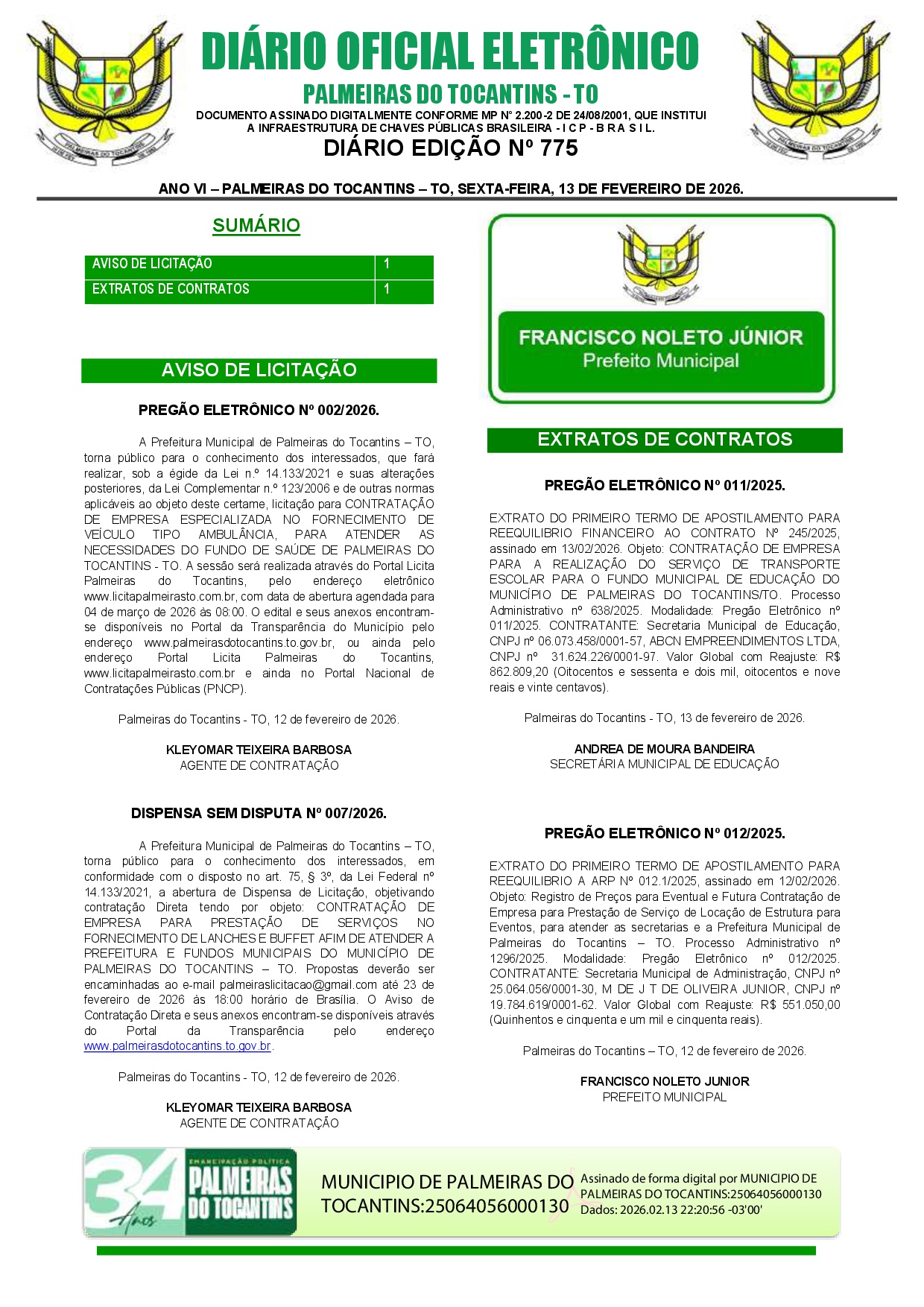EDIÇÃO N° 775, de 13 de Fevereiro de 2026.
