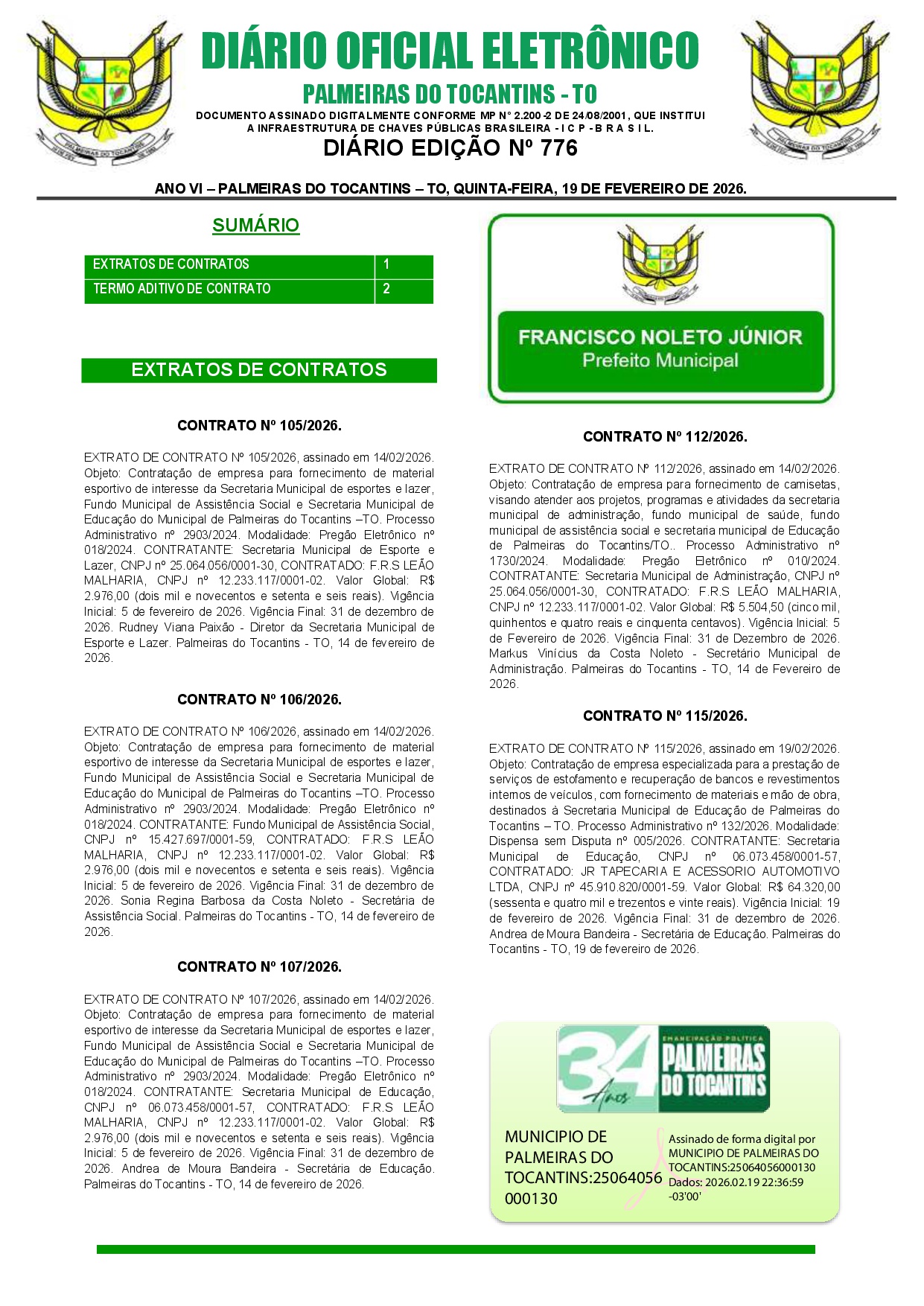 EDIÇÃO N° 776, de 19 de Fevereiro de 2026.