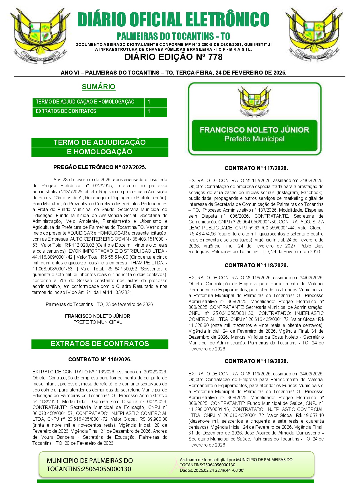 EDIÇÃO N° 778, de 24 de Fevereiro de 2026.