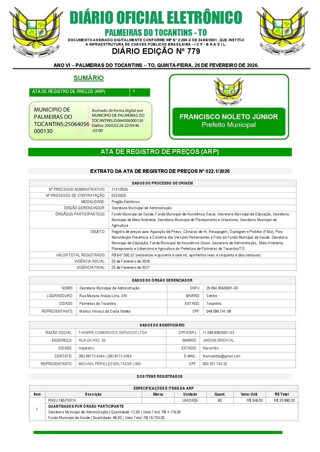 EDIÇÃO N° 779, de 26 de Fevereiro de 2026.