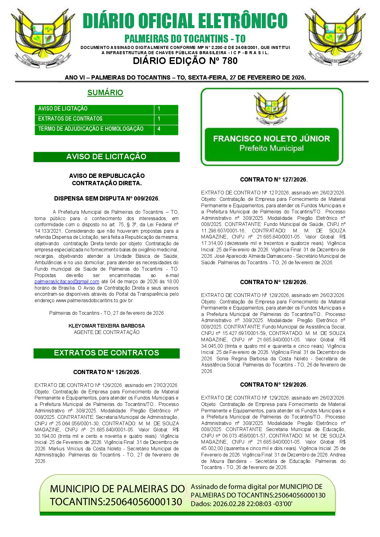 EDIÇÃO N° 780, de 27 de Fevereiro de 2026.