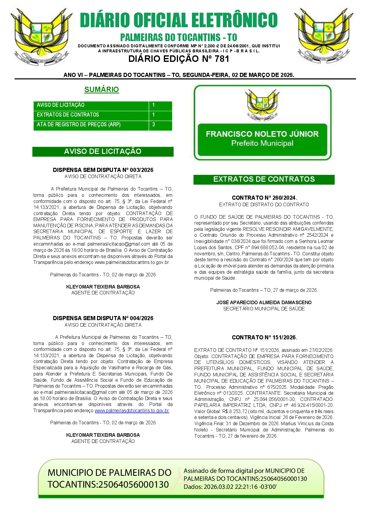 EDIÇÃO N° 781, de 02 de Março de 2026.