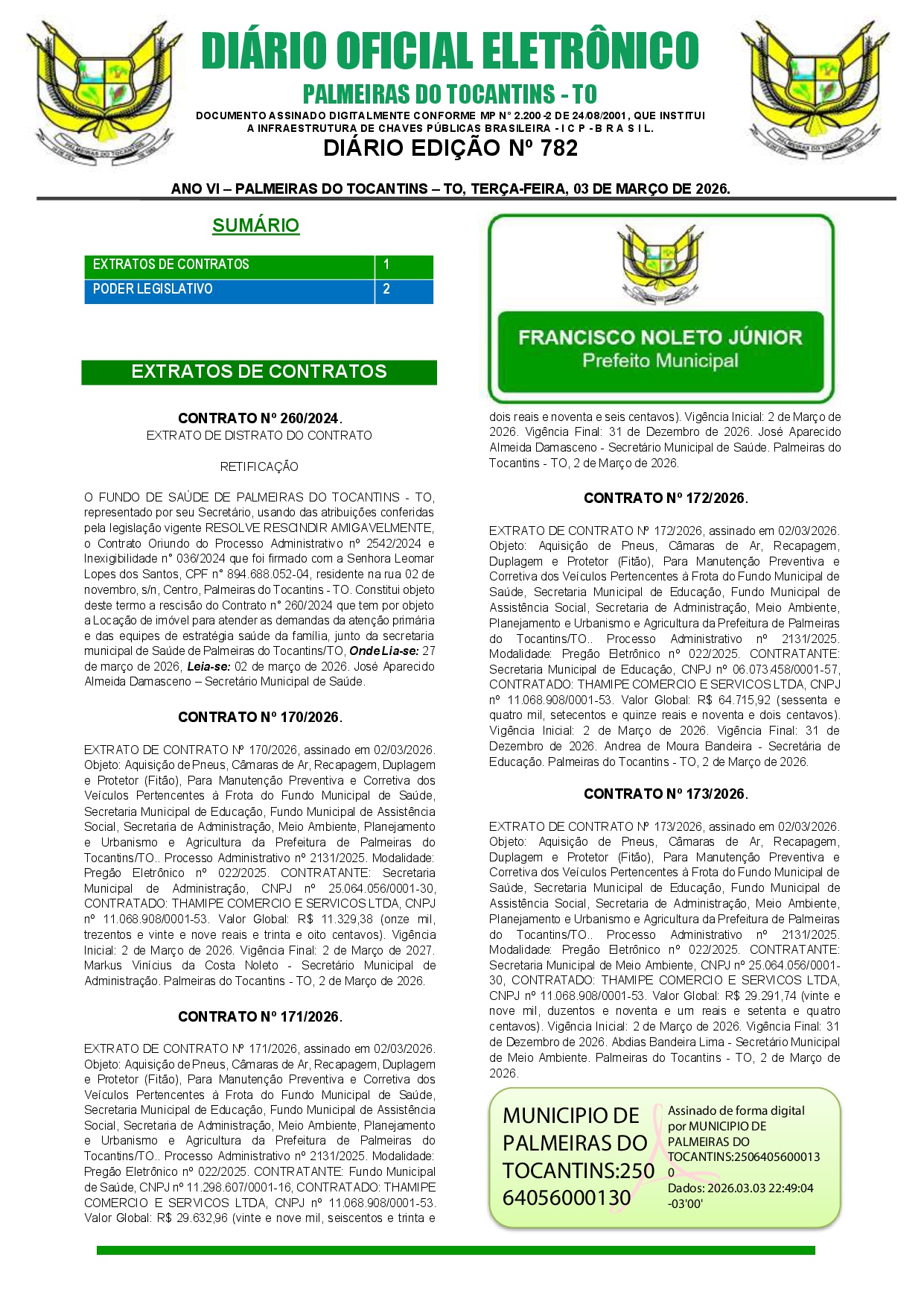 EDIÇÃO N° 782, de 03 de Março de 2026.