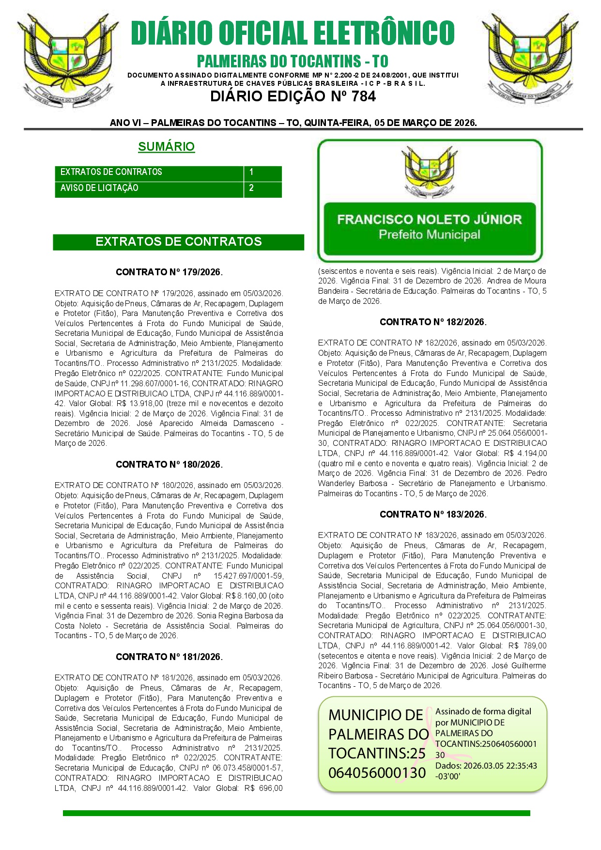 EDIÇÃO N° 784, de 05 de Março de 2026.
