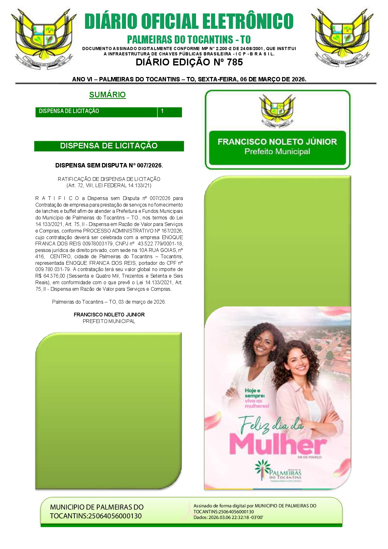 EDIÇÃO N° 785, de 06 de Março de 2026.