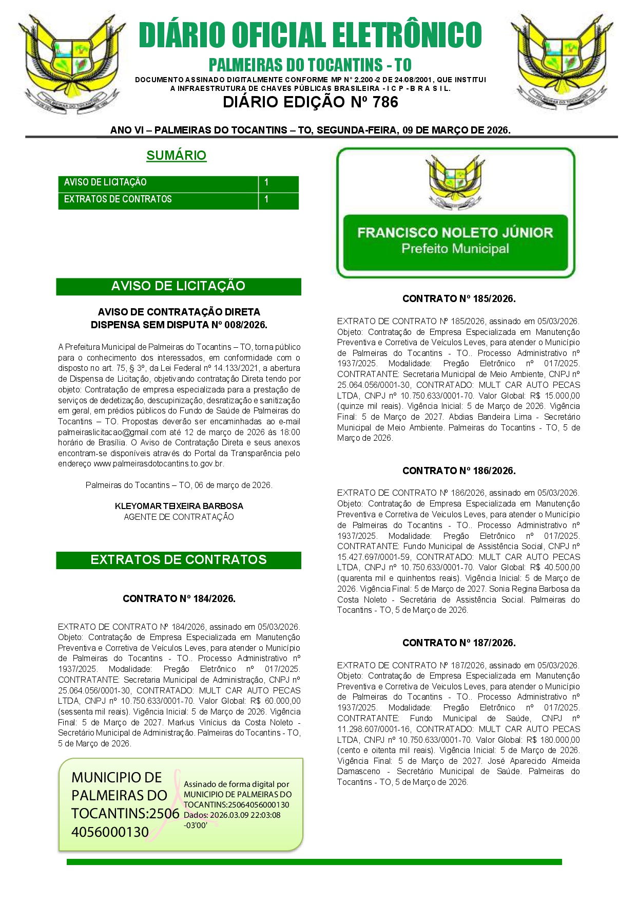 EDIÇÃO N° 786, de 09 de Março de 2026.