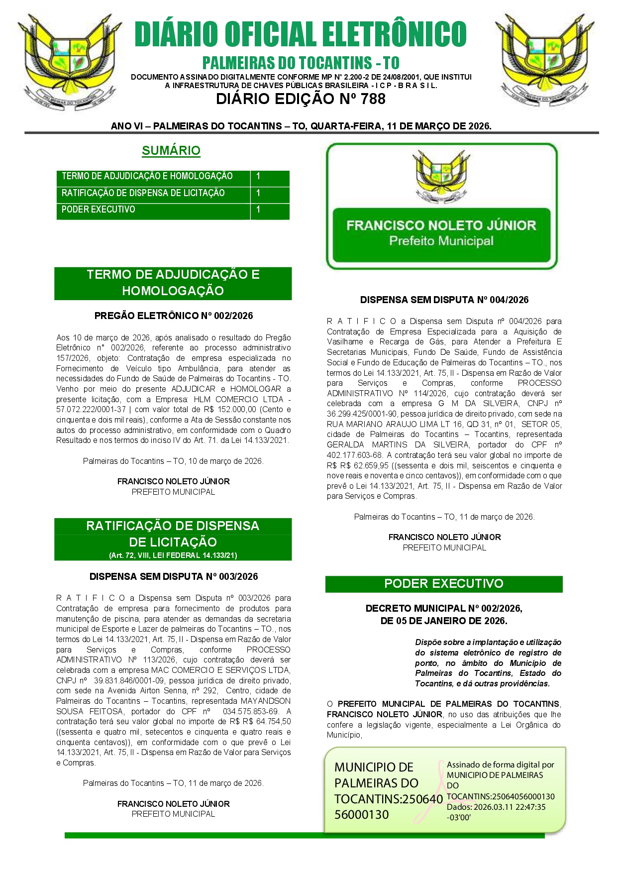 EDIÇÃO N° 788, de 11 de Março de 2026.